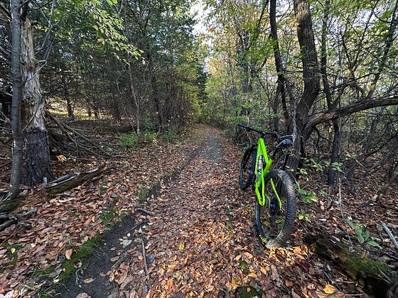 It’s hard to accurately capture the colors I saw, or describe the feeling I got when I dropped into this wooded section of the trail yesterday. I normally drive hard right through it and on to some switch backs, but I hit the brakes instead. And I’m glad for it.