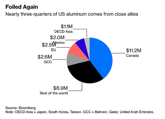 Followup on today’s post: Trump’s tariffs on steel and aluminum overwhelmingly fall on close allies. How to lose friends and stop influencing people