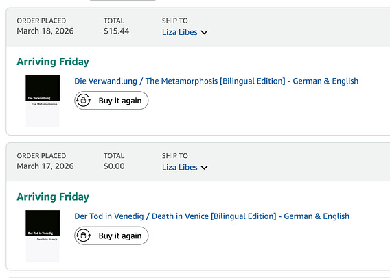 It’s time for a challenge: reading Kafka and Mann in German. Wish me luck!