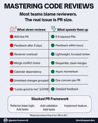 The real issue is opening one giant PR after three days of coding and expecting instant feedback.