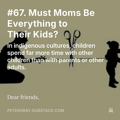 THE PROBLEM is, we’ve destroyed most of the child’s natural social world, so parents (moms) feel called upon to take on what others, in a normal human environment, would have taken on. I got to thinking about all this when I read a recent article, by anthropologist Gabriel Scheidecker, entitled: Parents, caregivers, and peers: Patterns of complementarity in the social world of children in rural Madagascar. CLICK HERE: petergray.substack.com/…