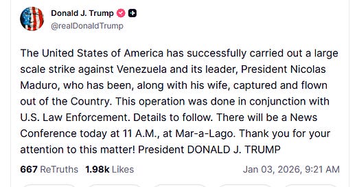 Update--Trump is claiming Maduro has been captured and is being transported out of the country. As I said in the piece, getting rid of Maduro is likely to be the easiest part. Let the regime change commence....