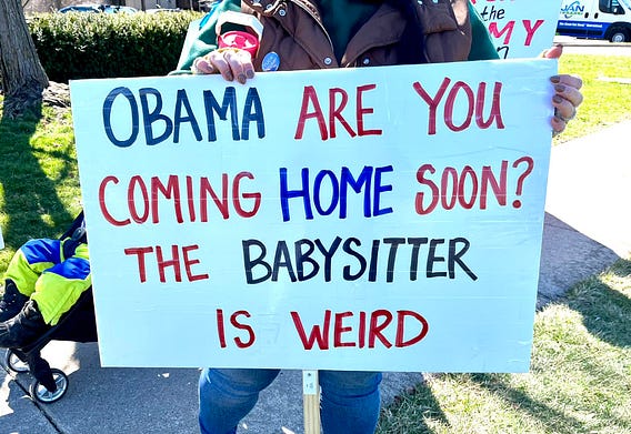 Spotted at No Kings rally in Farmington Hills, Michigan.