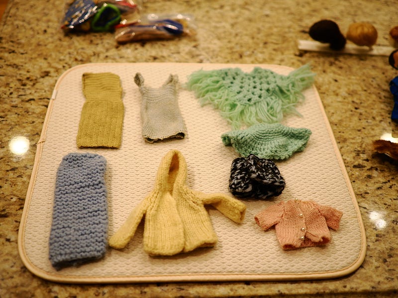 And for those of you who grew up playing with Barbie dolls, I give you these shots from the other night. My sister-in-law is cleaning out her house in preparation to put it on the market later in April. Among the items she found, was a box containing my wife’s old Barbie items. It was very emotional for my wife as she sorted through them, not having seen these items in over 60 years. She used to play with these with her late sister, and within the items of clothing, she found items that her late mother had crocheted for her. A real trip down memory lane.