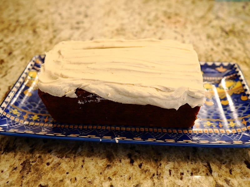 So, while that was my afternoon, my wife (baker extraordinaire) was busy in her kitchen with yet another new recipe. This was a combination of carrot cake and cinnamon roll with a cream cheese frosting. Oh my lord was it good when I had a small bite last night. I’ll have to post the recipe, but it really turned out great.