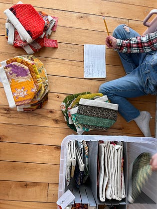 (Here, my daughter is counting Bible study bags for an upcoming sale!)