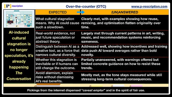 AI-induced cultural stagnation is no longer speculation, it’s already happening.The Conversation. |AI isn’t killing creativity overnight—it’s quietly nudging culture toward sameness. This piece explains how optimisation and remixing can flatten ideas unless humans push back.