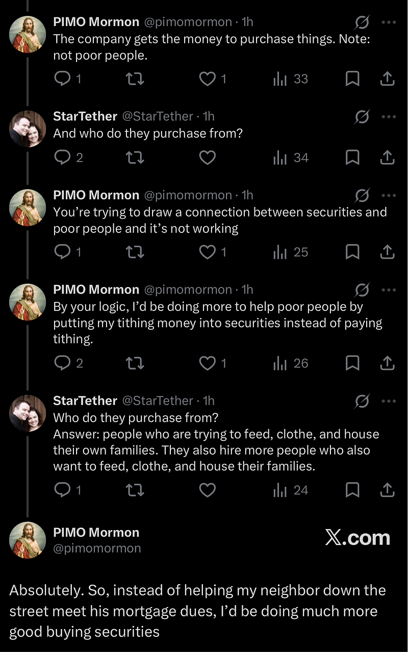 2) buying securities in the stock market is helping the poor