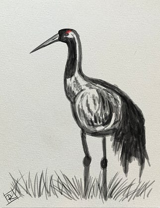 A quick experiment with watercolors in Procreate that I did a few days ago — a crane.