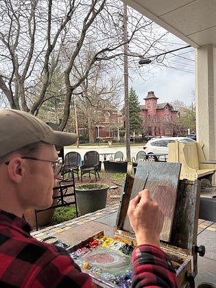 Painting and writing at our favorite local coffee shop this evening! Had to find some cover from the rain :)