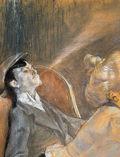 Now, if you were a Parisian in 1901 flipping through an art salon or catching sight of this pastel, that label would’ve hit you like a headline from Le Petit Journal, which was always sensationalizing these gangs as the scourge of the city, '30,000 of them versus a handful of cops', painting them as savage threats to polite society. You’d probably feel a thrill mixed with unease, seeing it as a peek into the forbidden underbelly that everyone whispered about but a few dared approach. The bourgeoisie might shudder at the reminder of urban dangers lurking just beyond their boulevards, while artists and bohemians could find it alluring, a slice of raw humanity amid the glamour of the Belle Époque. Legrand, with his passion for capturing nightlife’s edges, would’ve drawn you in to ponder the humanity behind the notoriety, making the supper feel like a quiet rebellion against the straight-laced world outside.