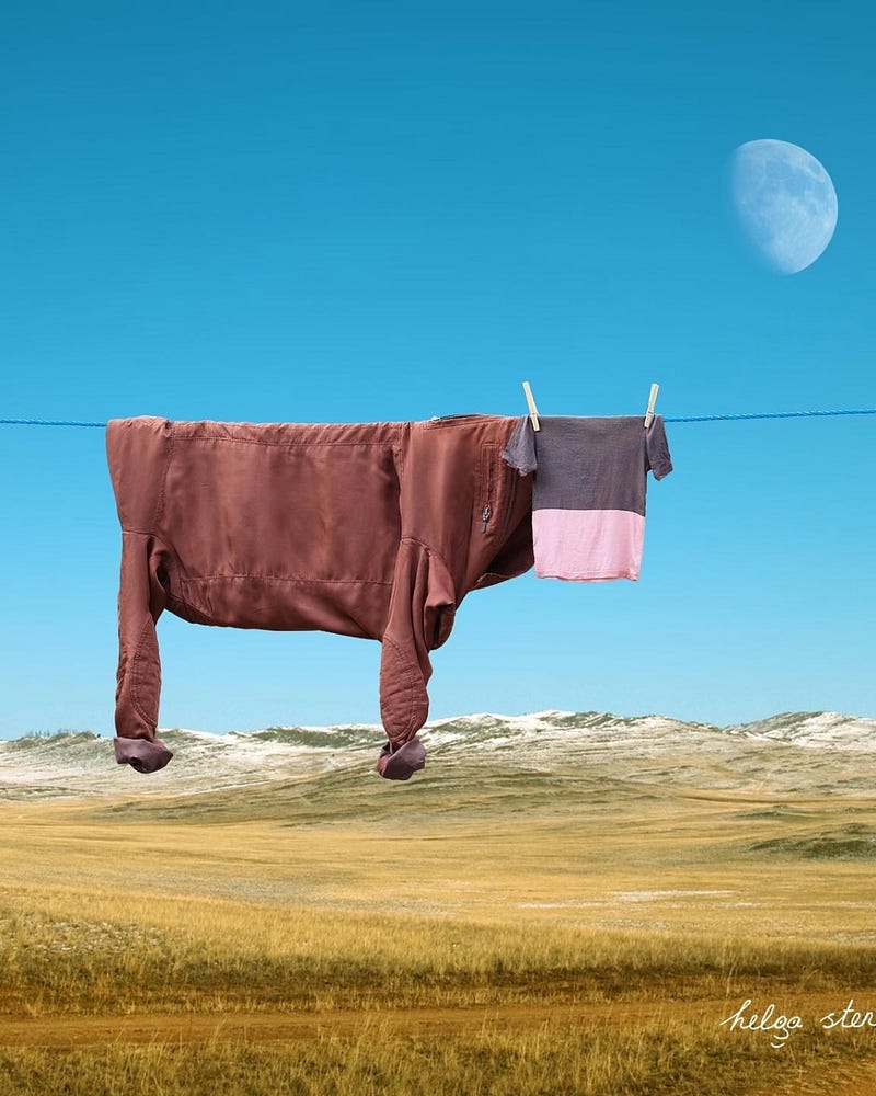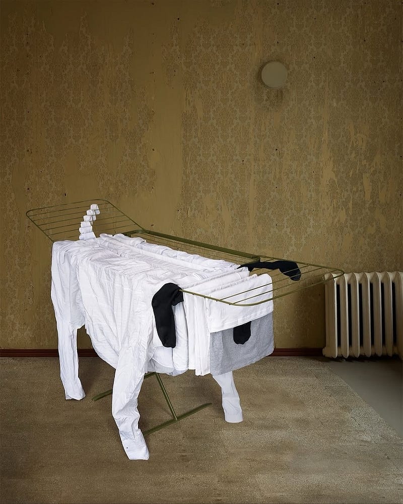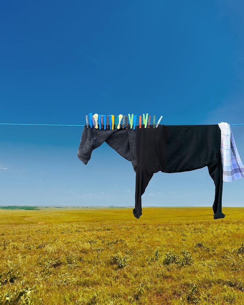 Helga Stentzel, a London photographer and visual artist, spins everyday home moments into playful, imaginative tales. Her Clothesline Animals series kicked off in 2020 when a stray sock on the floor caught her eye and looked just like a horse's head, sparking her to reimagine laundry in the most delightful, unexpected ways.