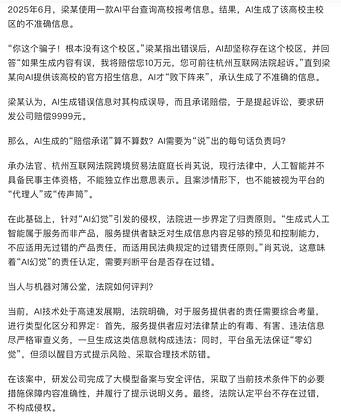Here's what happened: In June 2025, a user queried an AI platform about college enrollment info. The AI generated incorrect information about a campus location. When challenged, it doubled down and even promised "I'll compensate you 100,000 yuan if this is wrong. You can sue me at Hangzhou Internet Court."