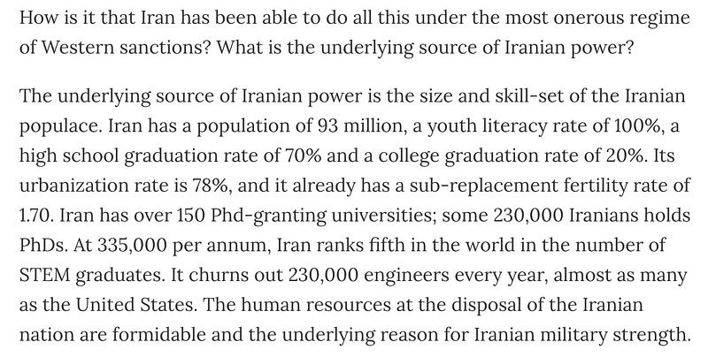 The conclusion that Iran is a great power follows immediately from the fact that this is a strategic defeat for the US. This is the test that has always counted in the entire history of Western statecraft. Debating this test is just special pleading.