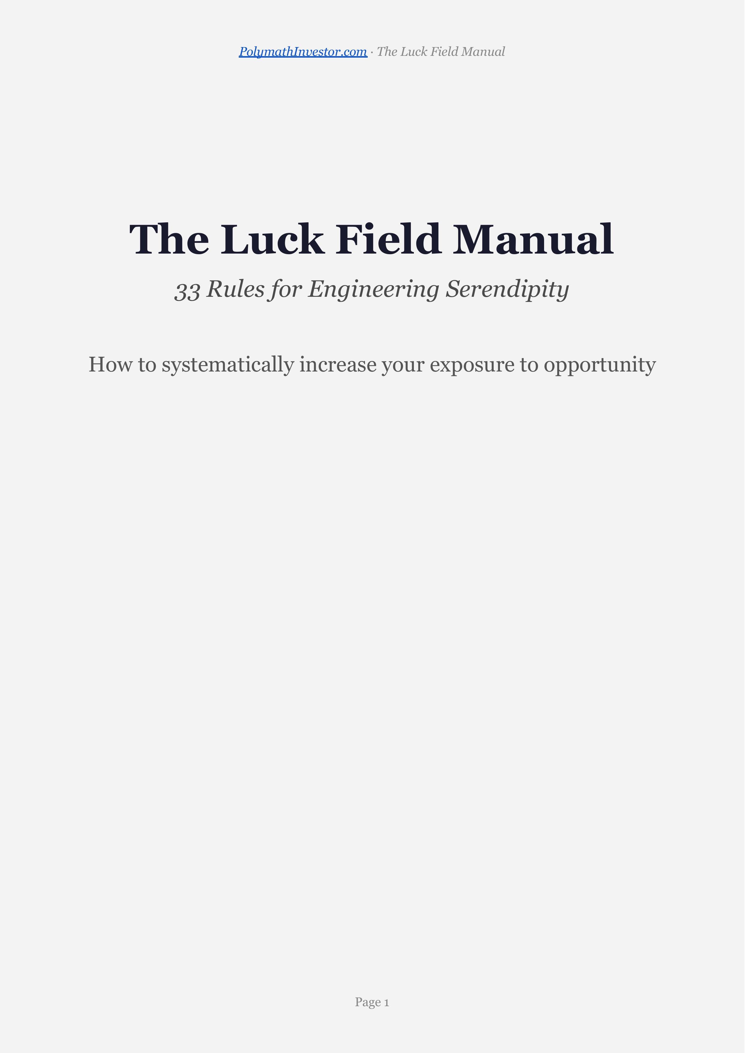 I thought I’d share this abridged version on “how to manufacture luck”. Hopefully it helps you accomplish your professional goals in the year ahead.