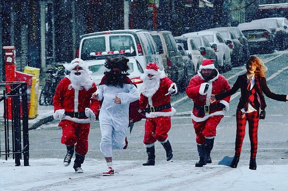 One of my favorite ever Christmas pics is Trisha Posner joining some snowbound Santa Clauses for a few minutes of fun in the snow. Sending everyone the best Christmas wishes from both of us (from sunny Miami Beach this year)