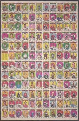 The Uncut Sheet Collectible of the Day, from the Post War Cards Uncut Sheet Photo Archive: A 1971-72 O-Pee-Chee Hockey Sheet of 132 Cards (1-132) that comprieses 50% of a complete 264-card set.