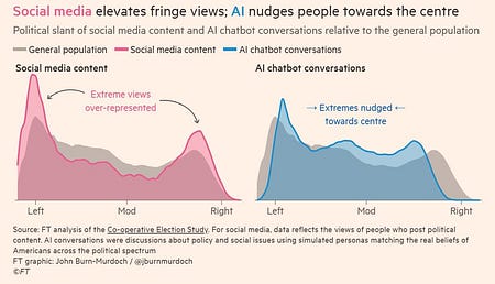 While social media shows you extreme content, AI is more likely to show people more moderate content