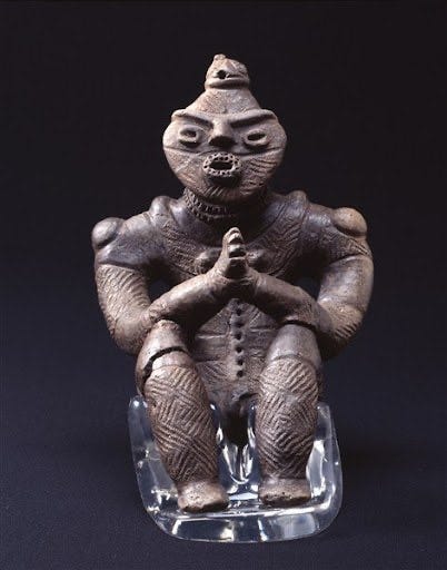 Dogū with palms pressed together, late Jōmon period (2000-1000 BC), Japan.