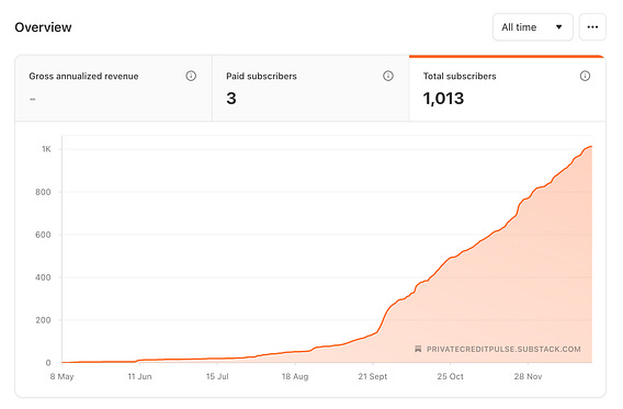 Guys, thanks for the Christmas gift… we hit 1.000 followers! What started as a simple idea has turned into a real community, and I’m genuinely grateful to everyone who’s tapped in. If you follow Private Credit Pulse, you’re here because you care about the space, the deals, and where this market is going. I’m excited to keep shipping content, sharing insights, and building something that actually adds value. Thanks for riding with me, more to come.