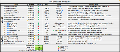 Medium-term conditions are favourable from a macro and crypto perspective according to my Risk-On Risk-Off (RORO) framework.