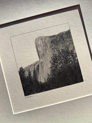 Was in the middle of matting and framing this old pencil drawing of El Capitan when the most perfect light poured through the window, revealing the beautiful texture of the paper. Had to share!