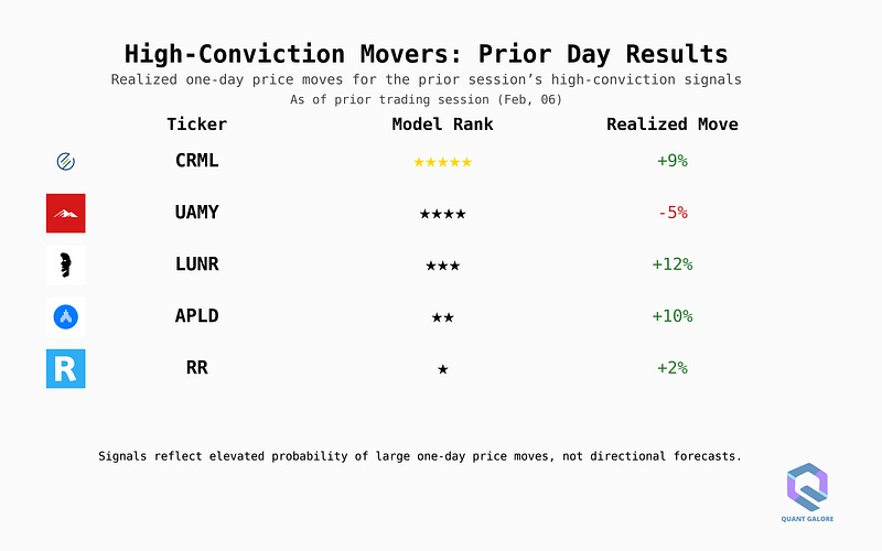 One-Day High-Conviction Movers: Forecasts vs. Results