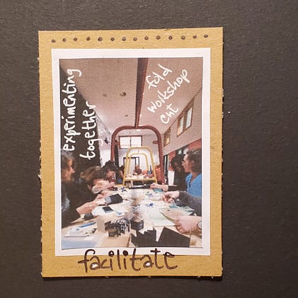 #100dayproject2026 day 10: facilitate (what an honour it was to facilitate a short workshop - a snippet demo, really-based on my use of folded and accordion books and collage as a way to think through, explore and present research; or card 3/7 based on the Workshop on workshops event I just attended). Reflection on creating side by side; on unexpected interpretations; and on what it means to take one artistic practice as a starting point, and let it fly.