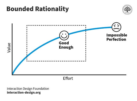 “Satisficing.” Not driving yourself crazy looking for perfection from trivial matters.