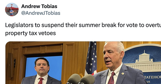 Perhaps Governor DeWine vetoed the property tax items from Ohio’s budget because Statehouse Republicans pulled them out their a$$..………… I spoke to a lobbyist this week who said, “I double checked after the budget passed. All the vetoed property tax items were things they just made up”