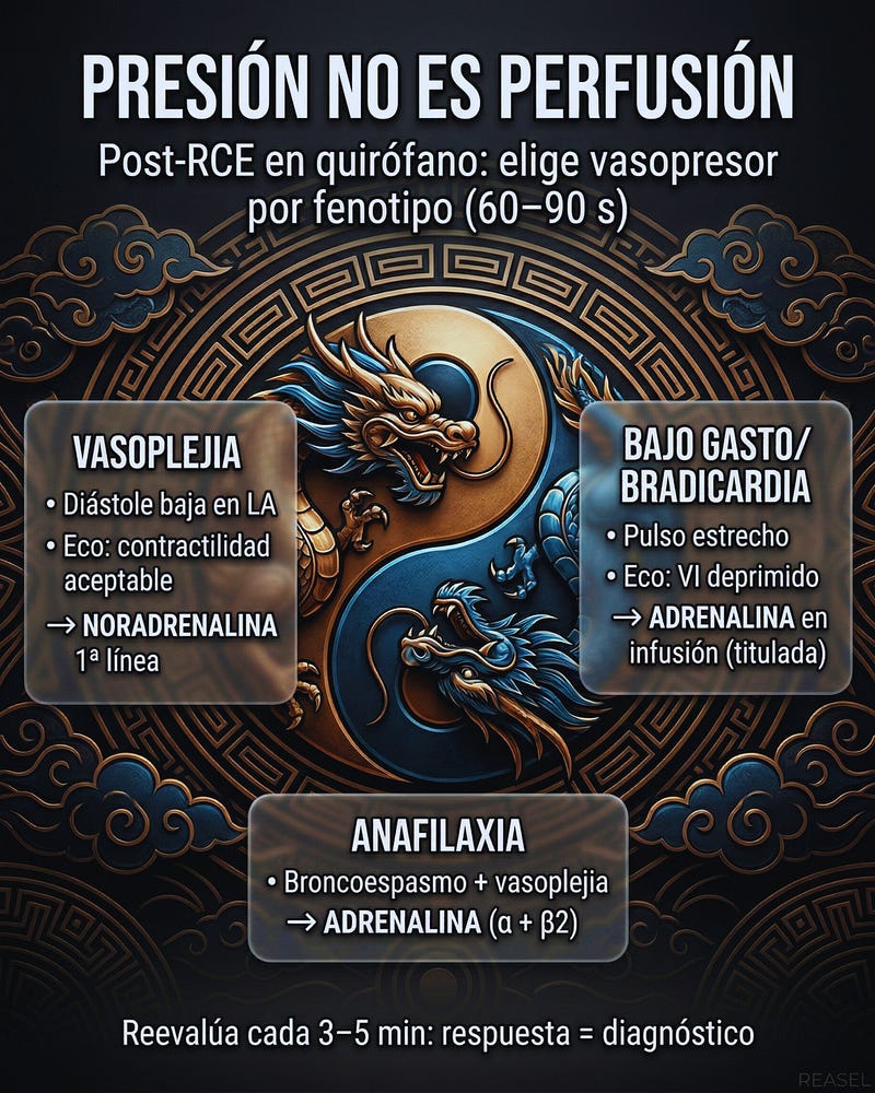 Post-RCE en quirófano, el dilema no es “mi vasopresor favorito”… es fenotipo.