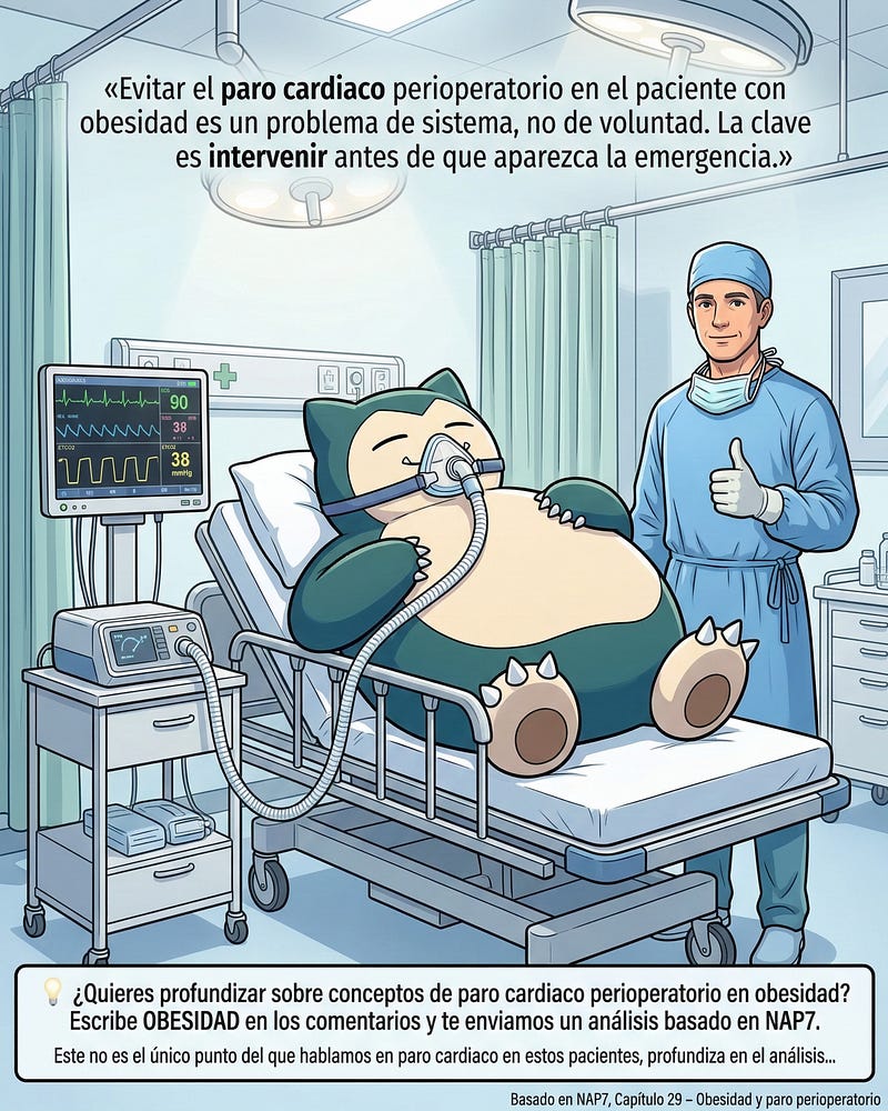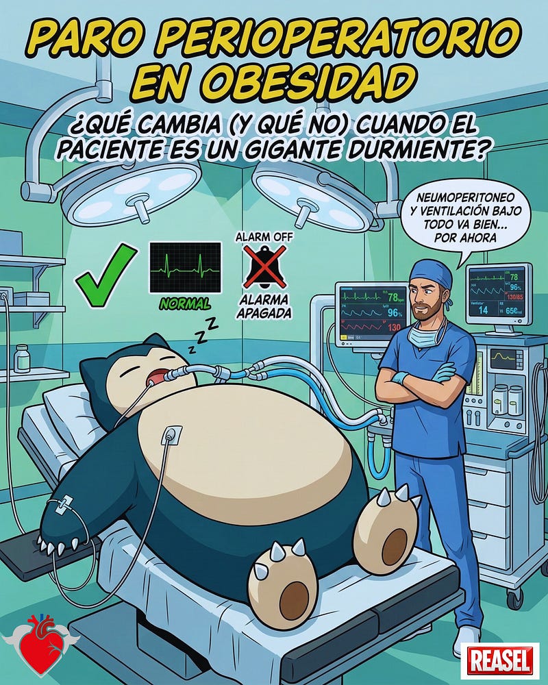 Lo que sí somos, y lo que nos apasiona, es expertos en reanimación en situaciones especiales. Sabemos de crisis, de sistemas de respuesta que funcionan bajo presión, y de cómo rescatar a un paciente cuando el monitor empieza a caer. Y hablar del paro cardíaco perioperatorio en pacientes con obesidad —ya sea en cirugía bariátrica o de cualquier otra especialidad— desde esta perspectiva es urgente para sumar seguridad y calidad a la atención en nuestros hospitales.