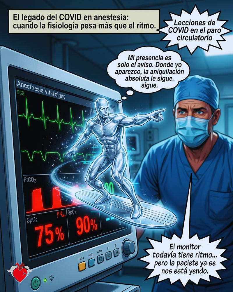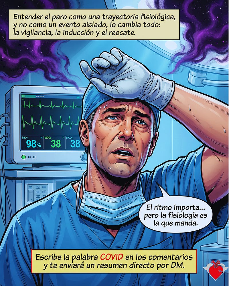 En pacientes con COVID-19, el paro perioperatorio nos enseñó una lección brutal: rara vez es un evento eléctrico repentino. Es el desenlace de una reserva fisiológica que lleva horas desmoronándose.