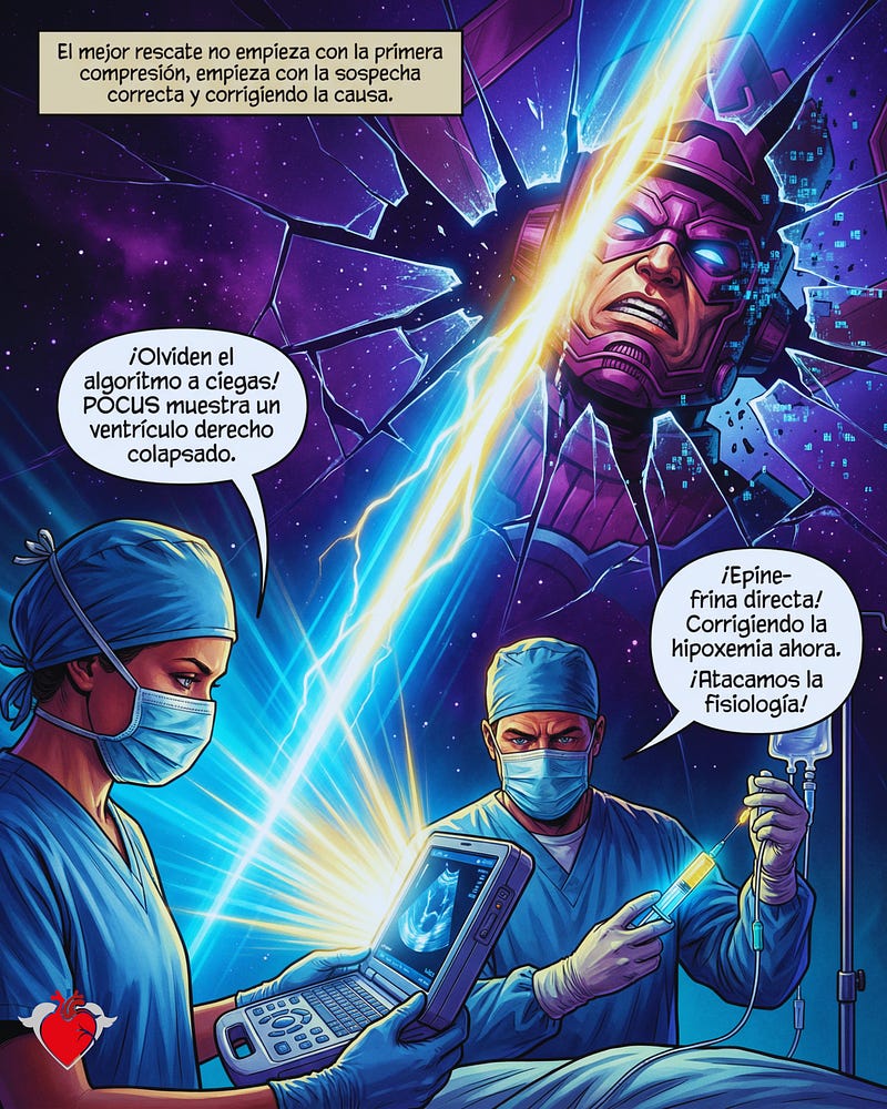 Si esperamos a que el ritmo desaparezca para empezar a actuar, llegamos tarde. El mejor rescate no empieza con la primera compresión; empieza con la sospecha clínica correcta, integrando herramientas como el POCUS para identificar la trayectoria del colapso antes de que suceda. ¡En quirófano tenemos que atacar la fisiología, no solo seguir un algoritmo a ciegas!