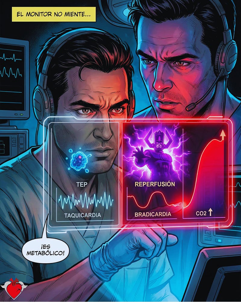 Cuando el monitor muestra bradicardia severa e hipotensión tras soltar el manguito, el instinto de pánico grita: ¡TEP masivo, ponle heparina! Pero el monitor no miente. Si el QRS es ancho, es un choque tóxico y metabólico. El éxito de esta batalla no está en el ACLS tradicional. Está en la anticipación táctica:
