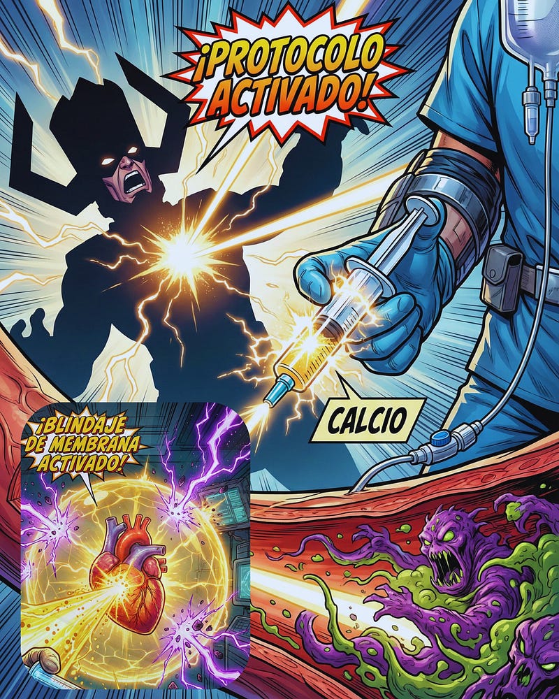 🛡️ Blindar la membrana: El Calcio es tu escudo principal antes de que el potasio detenga el corazón.