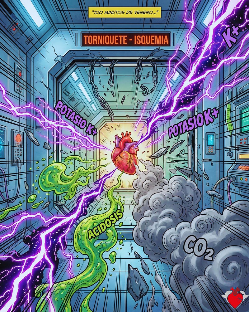 Después de 90-120 minutos, ese torniquete no solo detuvo la sangre; se convirtió en una incubadora tóxica. Al liberarlo de golpe, no estás "regresando volumen", estás soltando a un devorador implacable directo hacia el corazón: