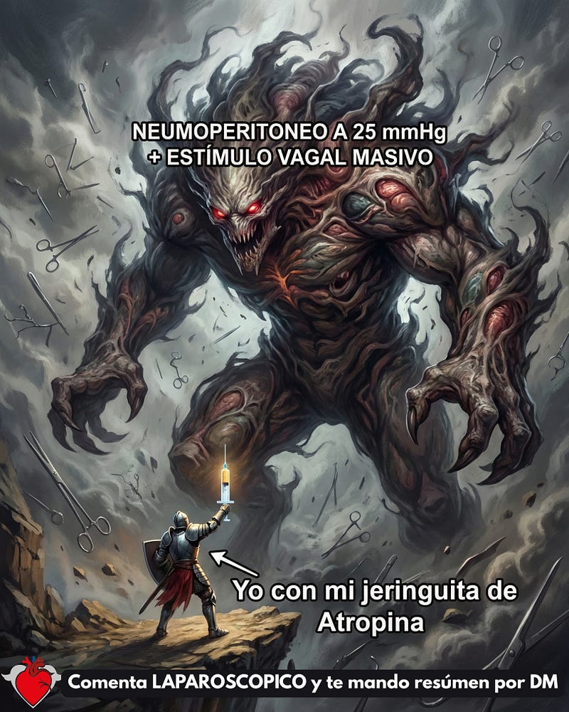 El problema es seguir pensando que todo se resuelve con una jeringuita de atropina mientras el neumoperitoneo sigue apretando, el peritoneo sigue estimulando el vago y la fisiología ya viene cayéndose.