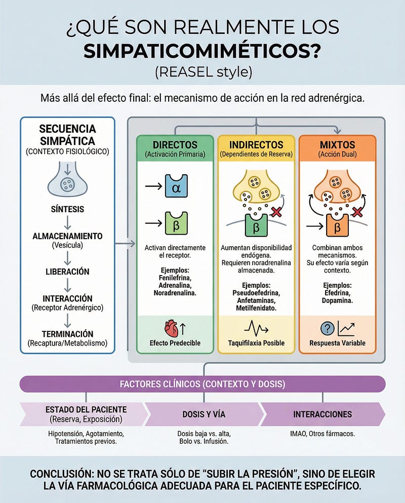 Te puede servir como referencia rápida cada vez que tengas que pensar qué simpaticomimético elegir frente a un paciente hipotenso.