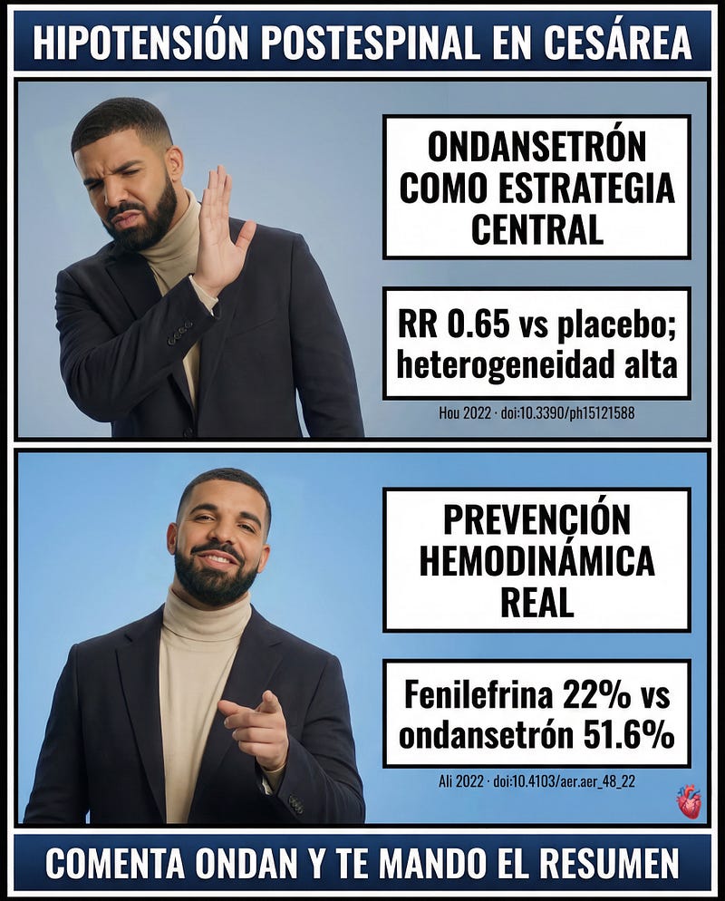 Y lo demás no cambia: vasopresor profiláctico, cocarga razonable y protección del retorno venoso desde el minuto cero.