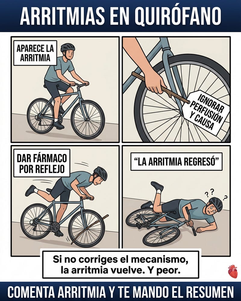 Muchas veces es solo la forma que tiene la fisiología de avisarte que algo más importante ya se está cayendo: perfusión, oxigenación, retorno venoso, bomba, electrolitos o un estímulo quirúrgico que nadie detuvo a tiempo.