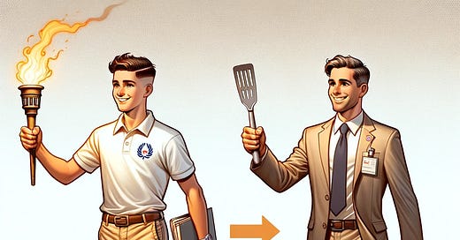 There’s not much of a difference (in terms of activity and relationship, not substance) between what this guy describes and joining a startup or building a new technology – style, intellect, challenge, risk.