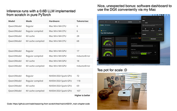 A small follow-up to my DGX Spark post. Courtesy of NVIDIA, I got to try the DGX on my workflows (coding LLMs from scratch in pure PyTorch) and wanted to share my first impressions after using it for a week.