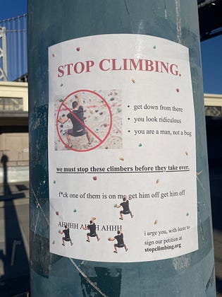 working on an international movement to Stop Climbing. if you would like to join us and put up flyers in your city, DM me.