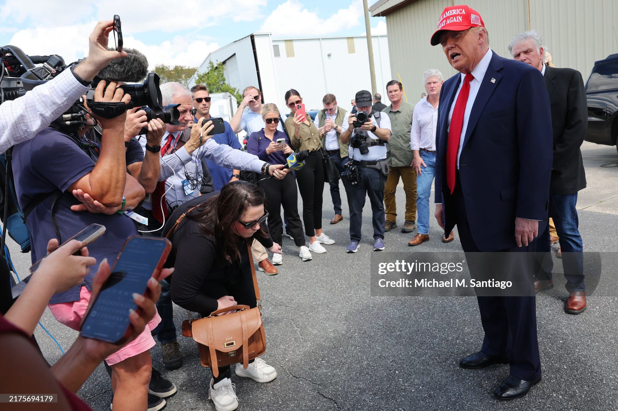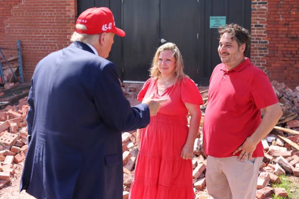 As Malloy points out, Trump's rhetoric blatantly exposes the subterfuge. But it’s not just the words, it’s also the visuals. Trump claims it’s a time for unity and support for others, not politicking, not drawing crowds, not jawboning the red-clad loyalists who suffered losses, not monopolizing the press, not usurping city and state resources with his ever-expanding security needs. Four pix—a thousand words each. (Photos: Getty Images)
