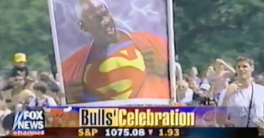 The story behind the iconic Michael Jordan Superman portrait from the 1998 Bulls championship rally at Grant Park. Enjoy!