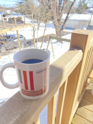 Happy Friday afternoon, ya’ll. May you be so lucky as to enjoy this delightful 40 degree weather with a delicious coffee in a Menards mug.