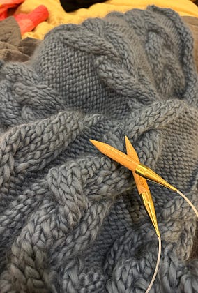 Iโm knitting as fast as I can over here! Trying to finish this gift. Also binging Queer Eye, and I think all the kindness from the show is pouring into this blanket. ๐๐๐งถ