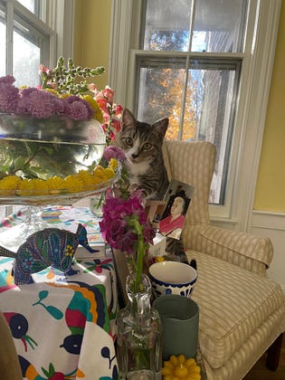 Then the Universe takes it up a notch. A woman at the grocery store shouts at me across the aisle. She has Down’s Syndrome and is wearing a pair of orange and green striped socks and a party dress. '“Hey!” she says. “You’re pretty!” I take this as a high compliment because I've just gotten over CoVid and am wearing a mask. “Thank you!” I say. “I love your dress and your socks!” She beams and tears come to my eyes. Why? I don’t know. I feel seen by a beautiful stranger.