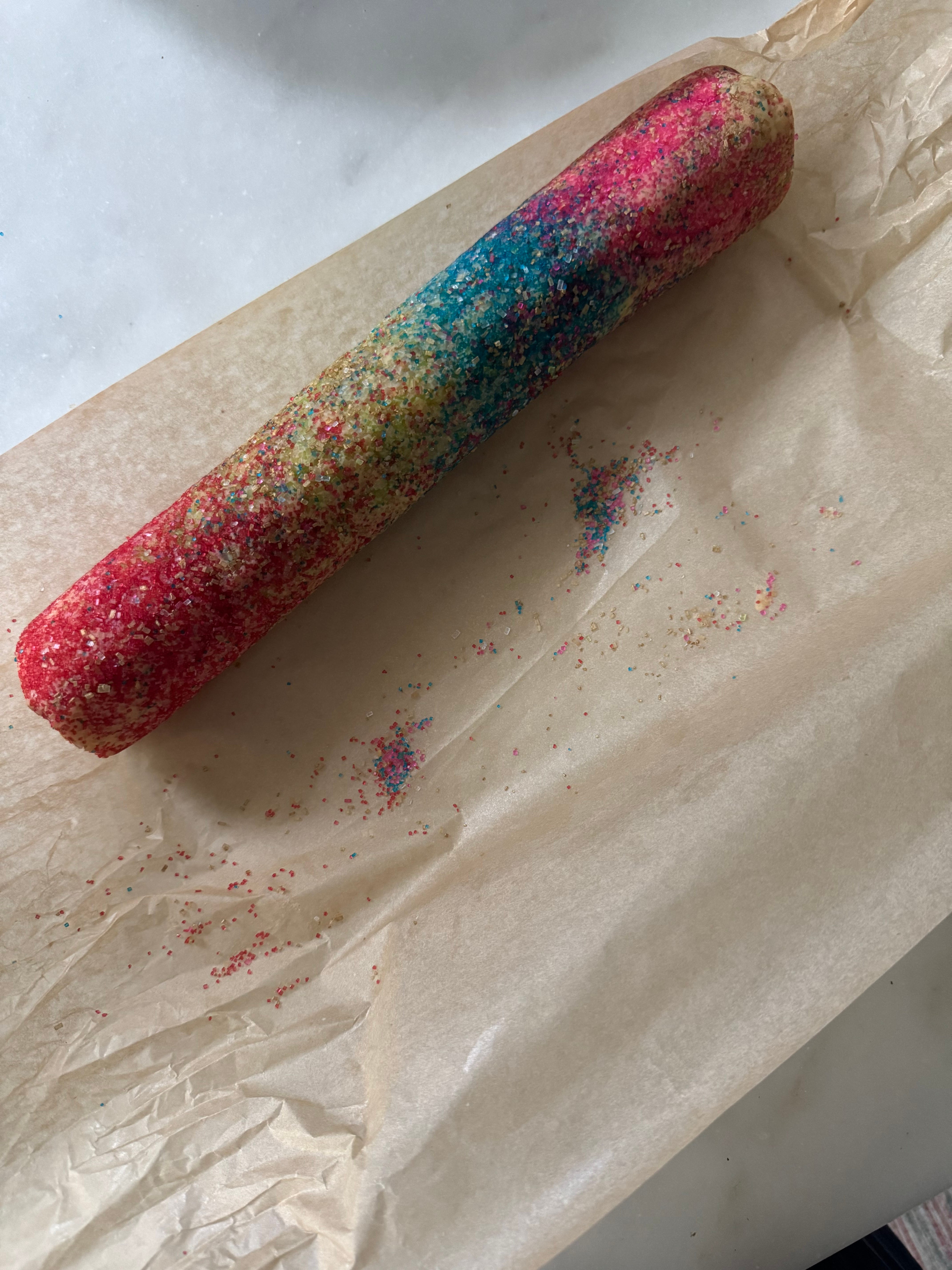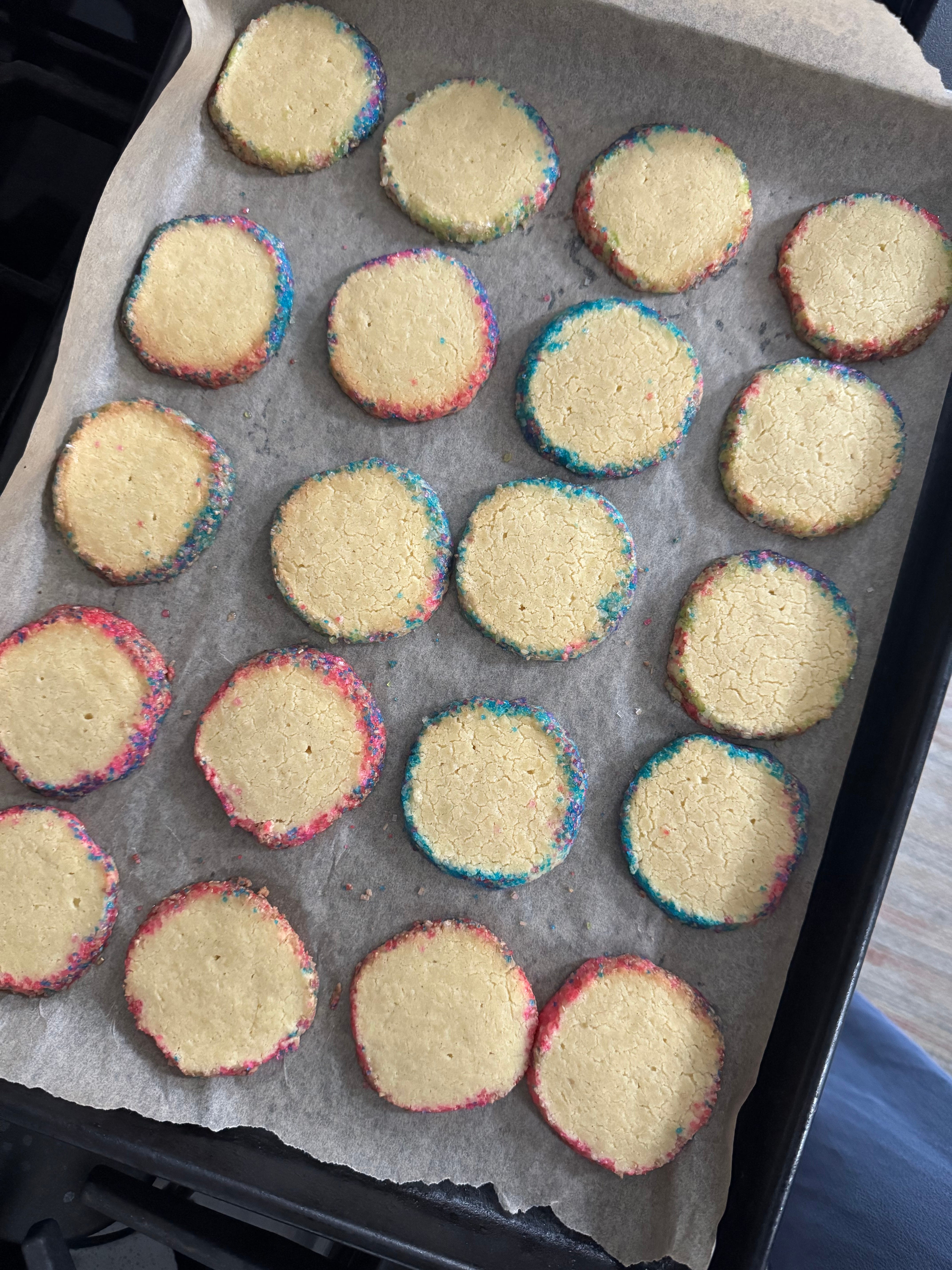 Since my niece and nephew were babies, I started making auntie cookies. A twist on Dorie Greenspan’s vanilla sablé with sprinkles. I let the kids choose the colors. For my niece’s 12th birthday, she asked for rainbow 🌈